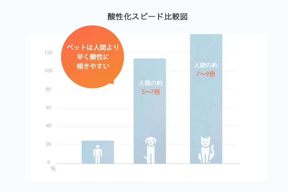 犬や猫は、人間の約7倍のスピードで体内が酸性化していくといわれています。