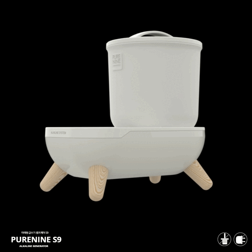 S9の貯水タンクには、アルカリボールをコーティングした特殊素材(韓国特許取得済み)を採用し、フィルターや電源を使わずに自然にアルカリ化されます。