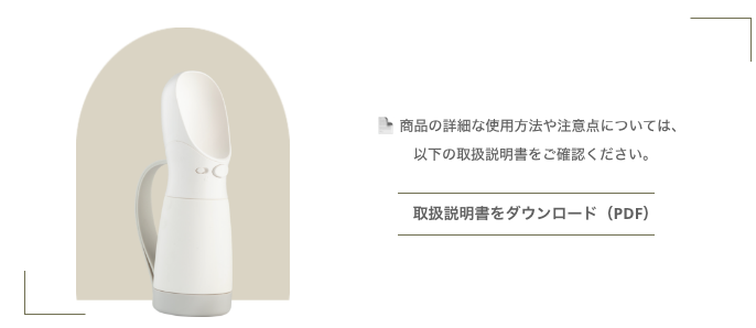 飲み残しだけ排水できる設計で、タンクの水は3〜5日に1回交換するだけ。すべてのパーツは簡単に分解・丸洗いできるので、お手入れのストレスがありません。